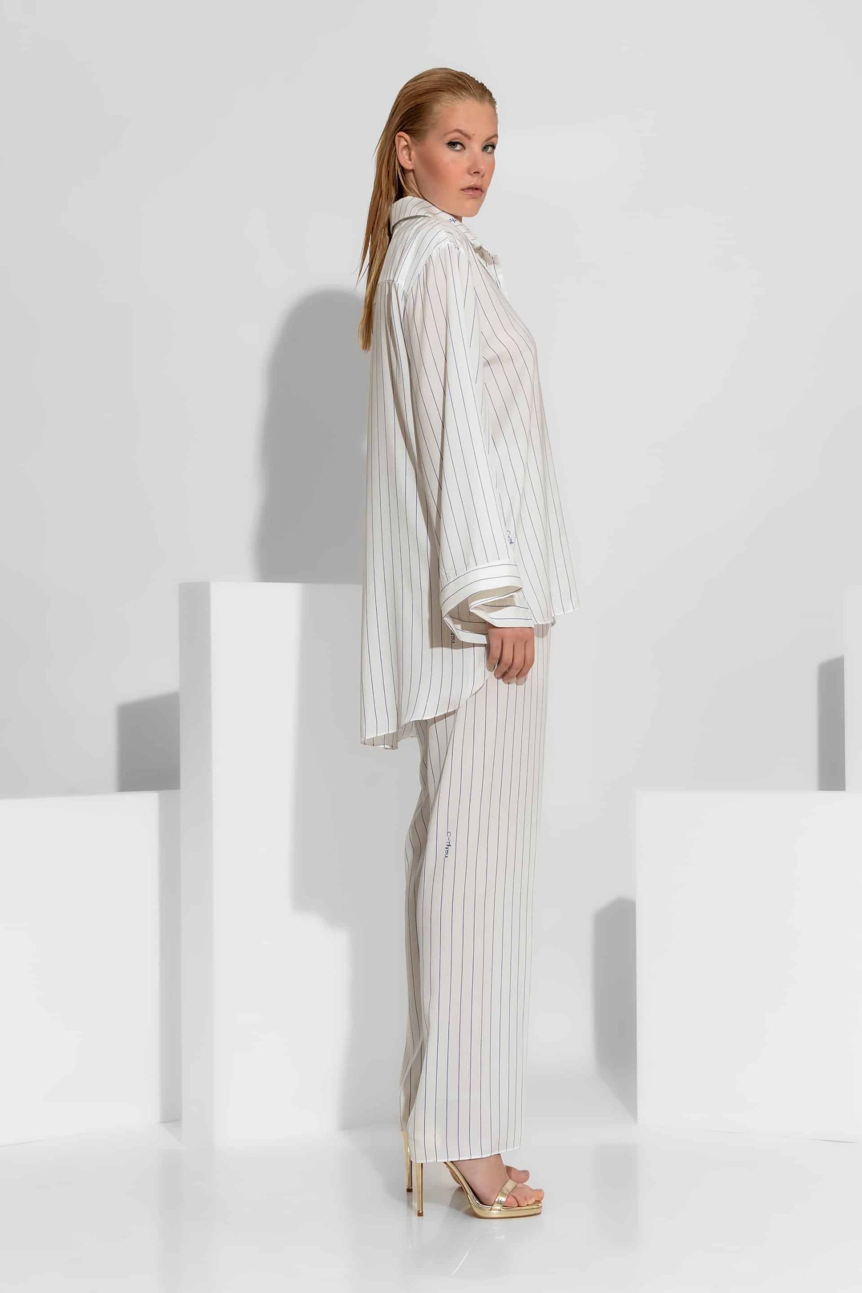 Oversized Σατέν Ριγέ Πουκάμισο με Signature Print