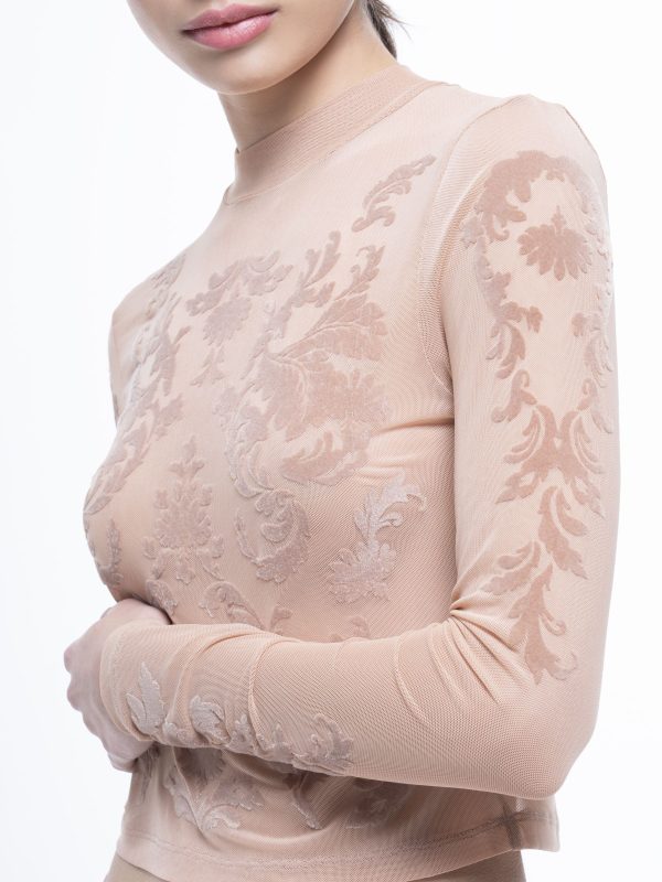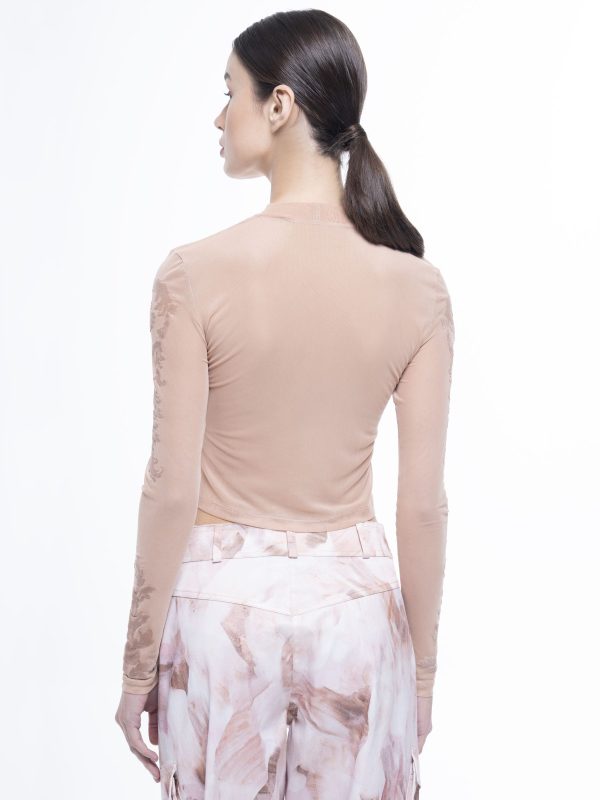 Το Project Soma ANIMA NUDE TOP κατασκευάζεται από τούλινο ελαστικό τύπωμα. Μακρυμάνικο crop top με ιδιαίτερο ανάγλυφο τύπωμα και λεπτομέρειες λάμψης.