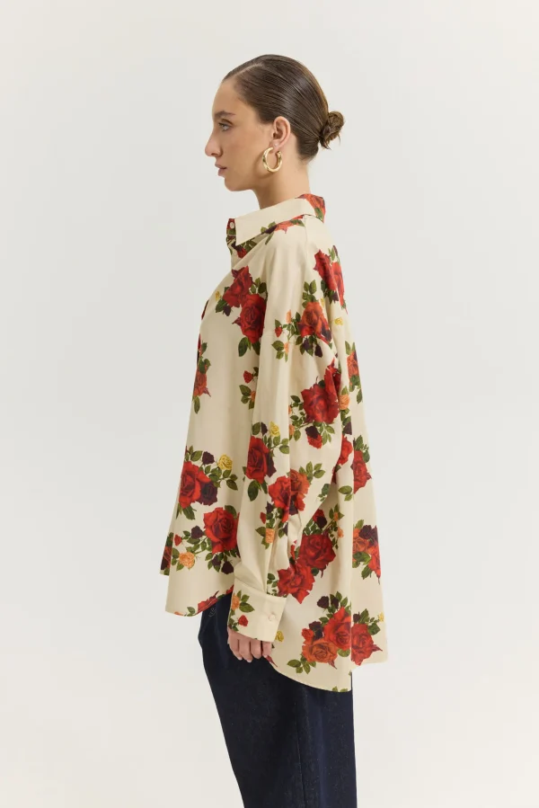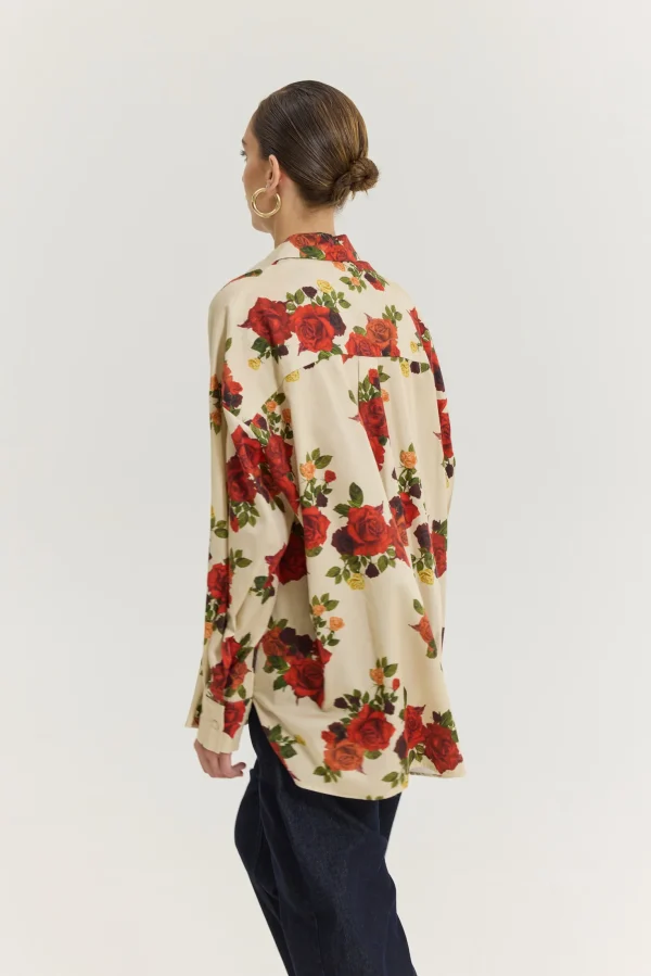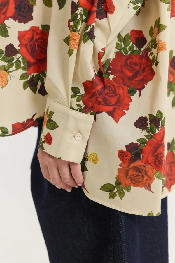 • Pattern με κόκκινα τριαντάφυλλα και μπεζ φόντο