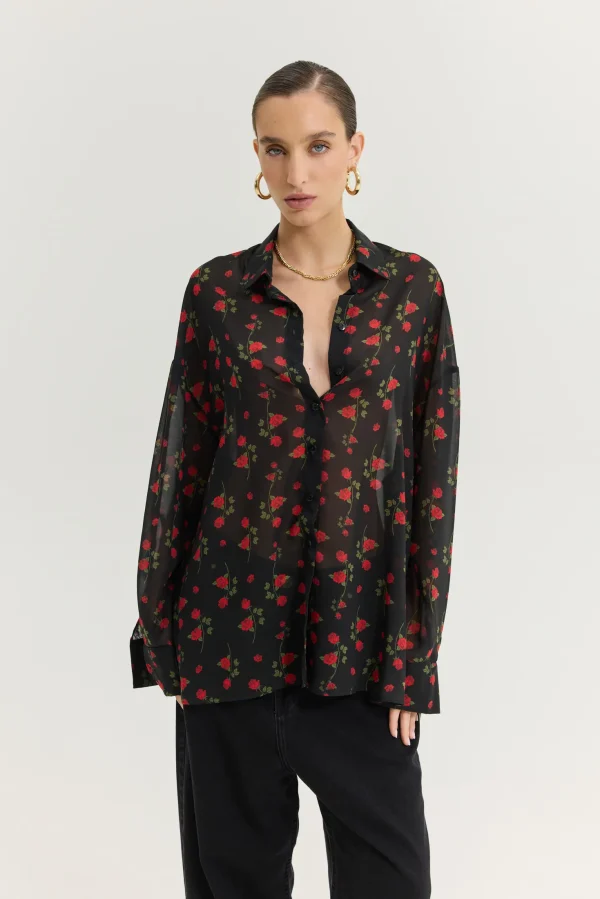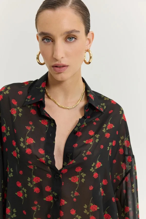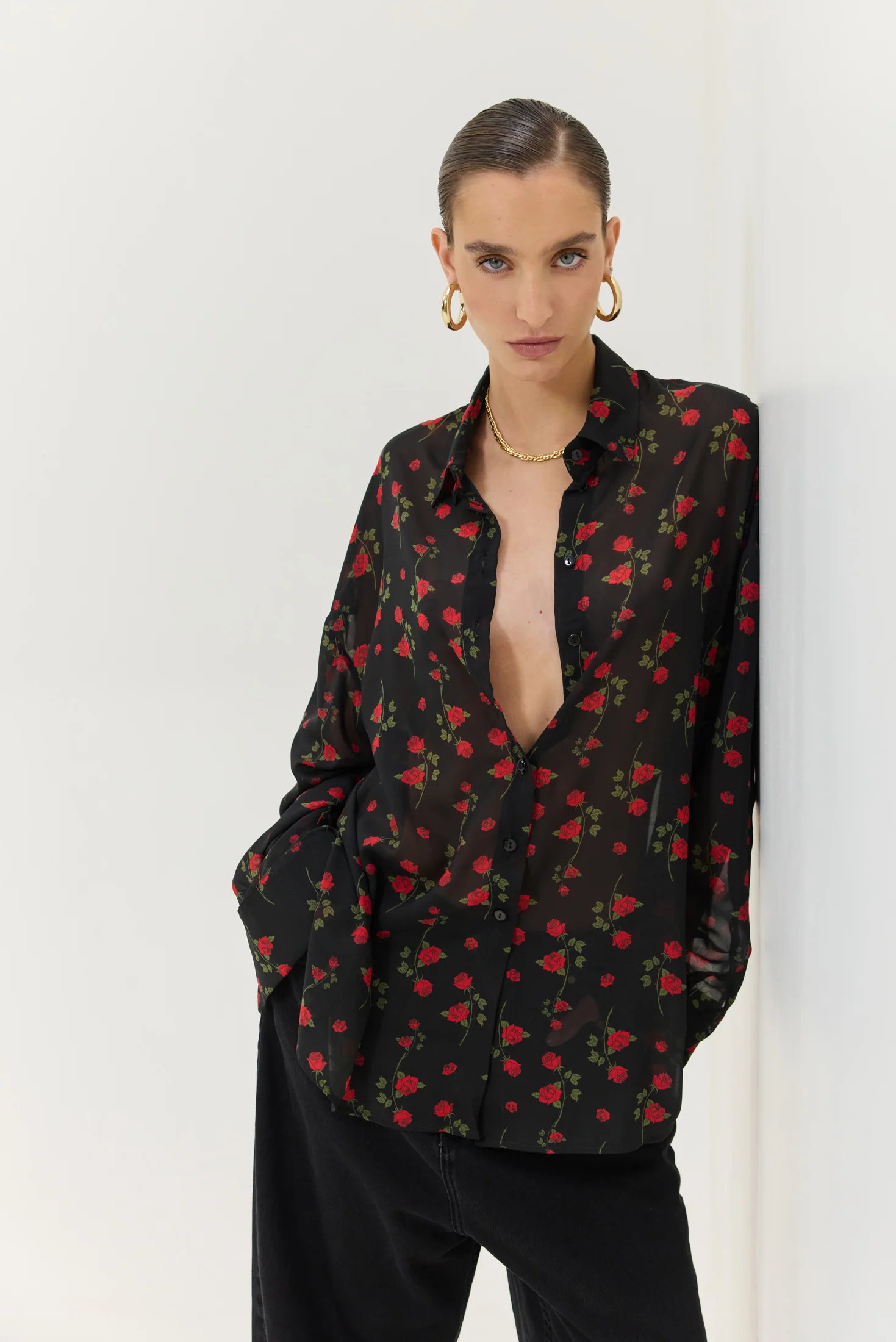 • Pattern με κόκκινα τριαντάφυλλα σε μαύρο φόντο