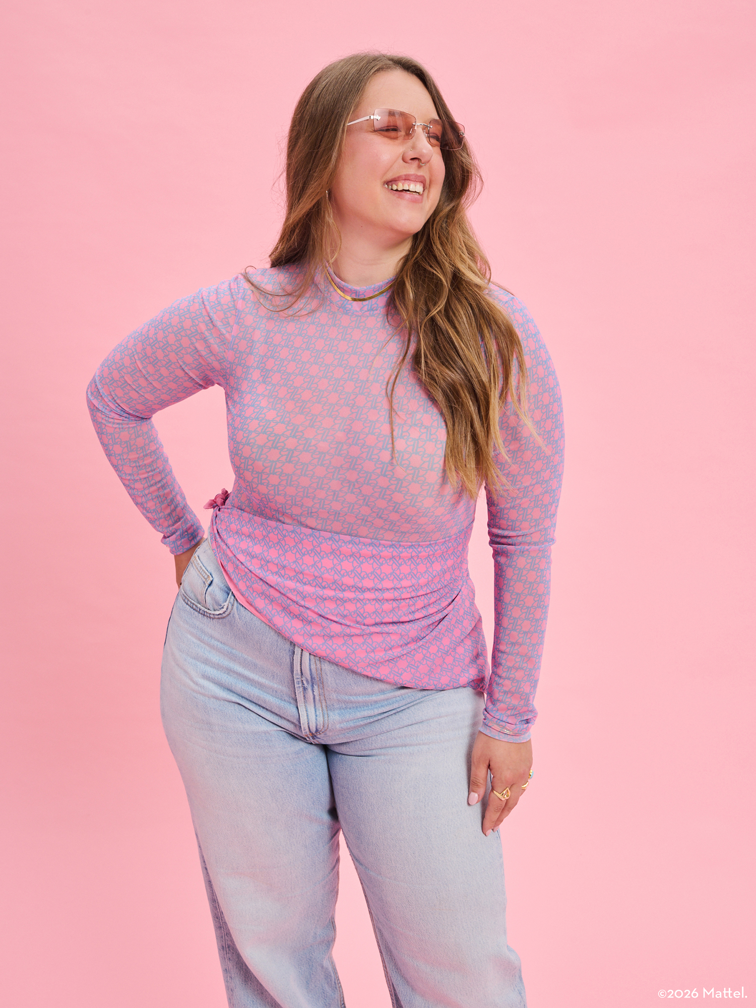 Το Barbie X PROJECT SOMA Imagine Pink Bodysuit κατασκευάζεται από ελαστικό τούλινο ύφασμα. Bodysuit με λουπέτο γιακά.