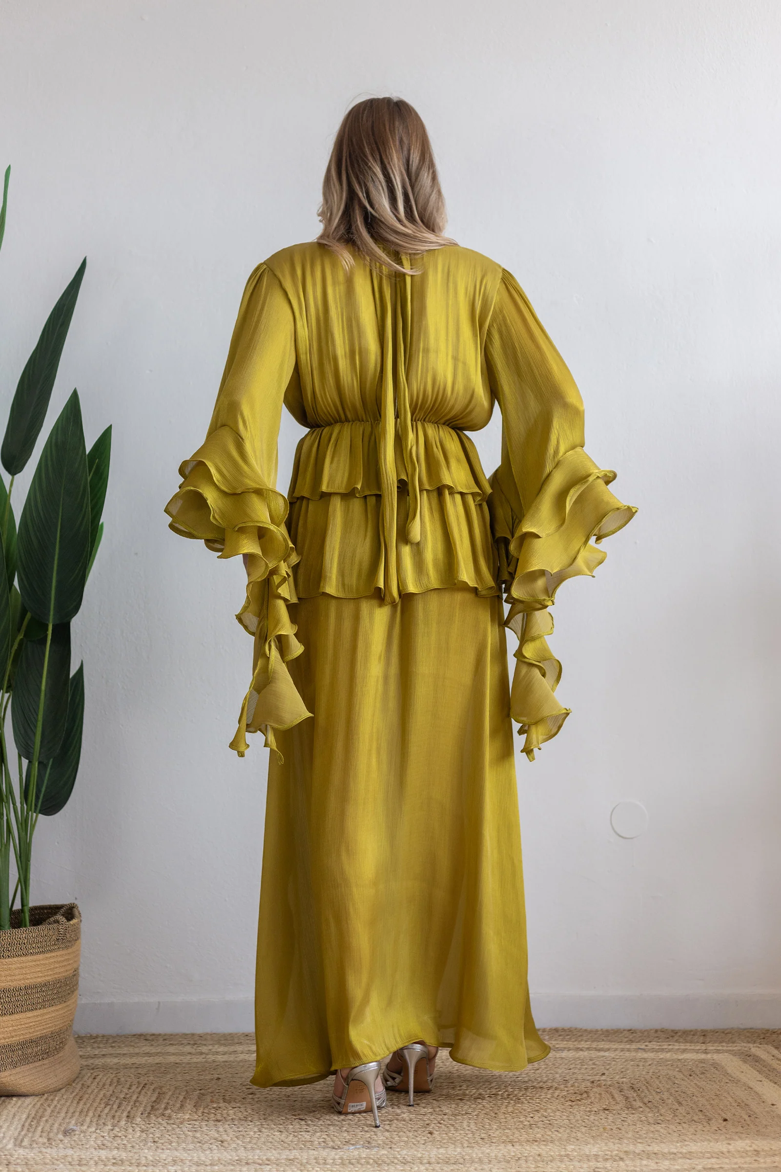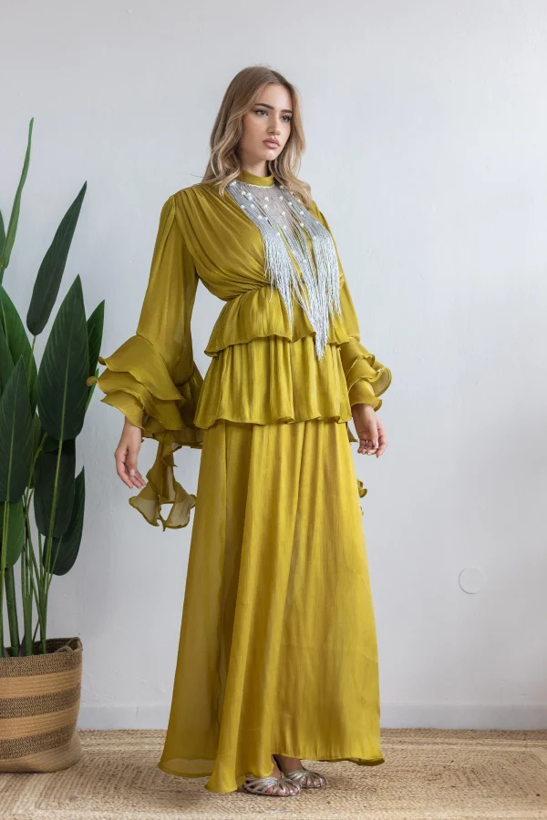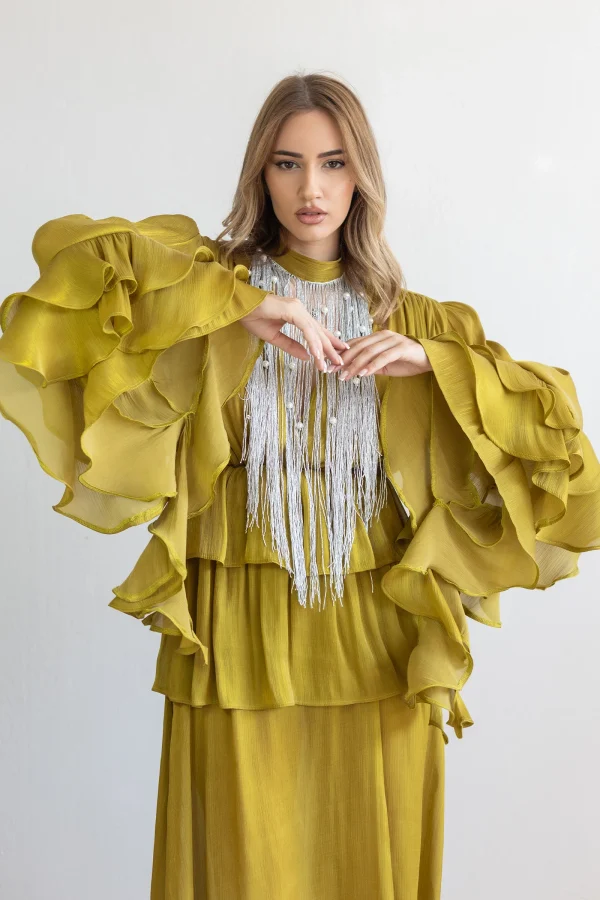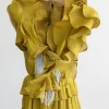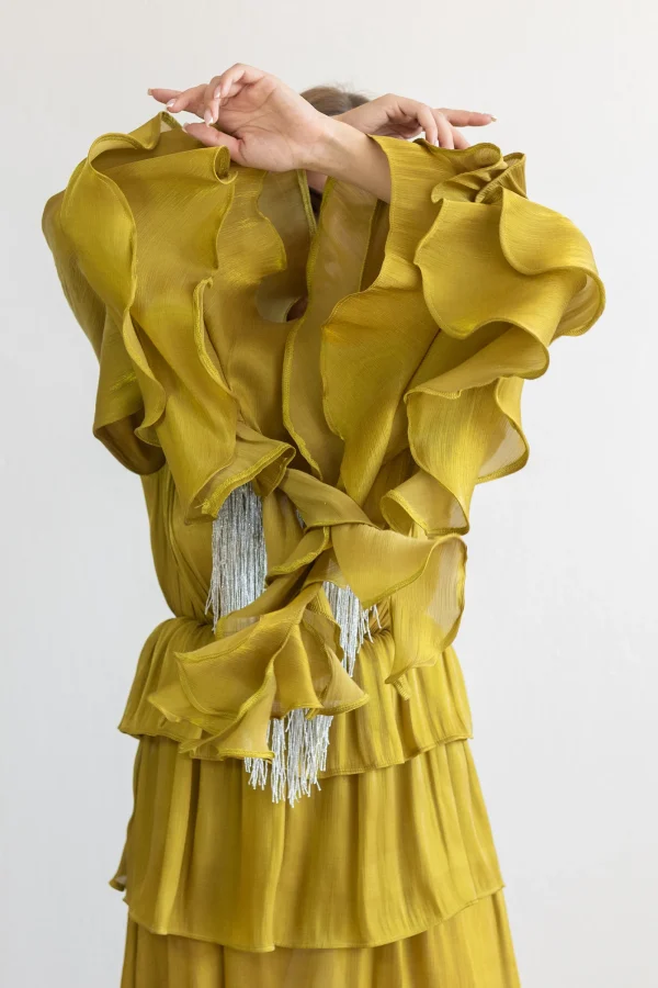 Ρομαντικό μάξι φόρεμα με βολάν & κρόσσια