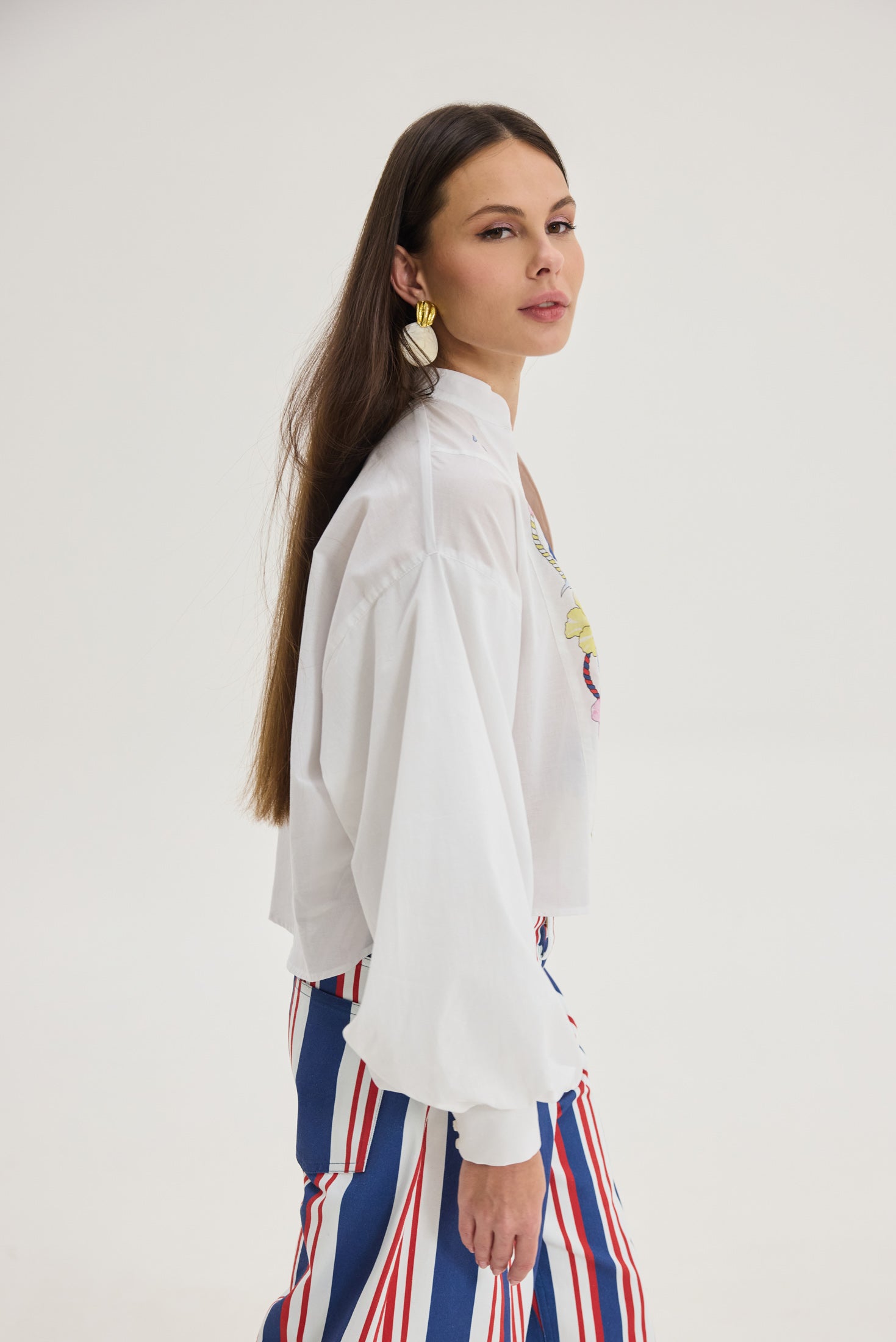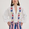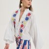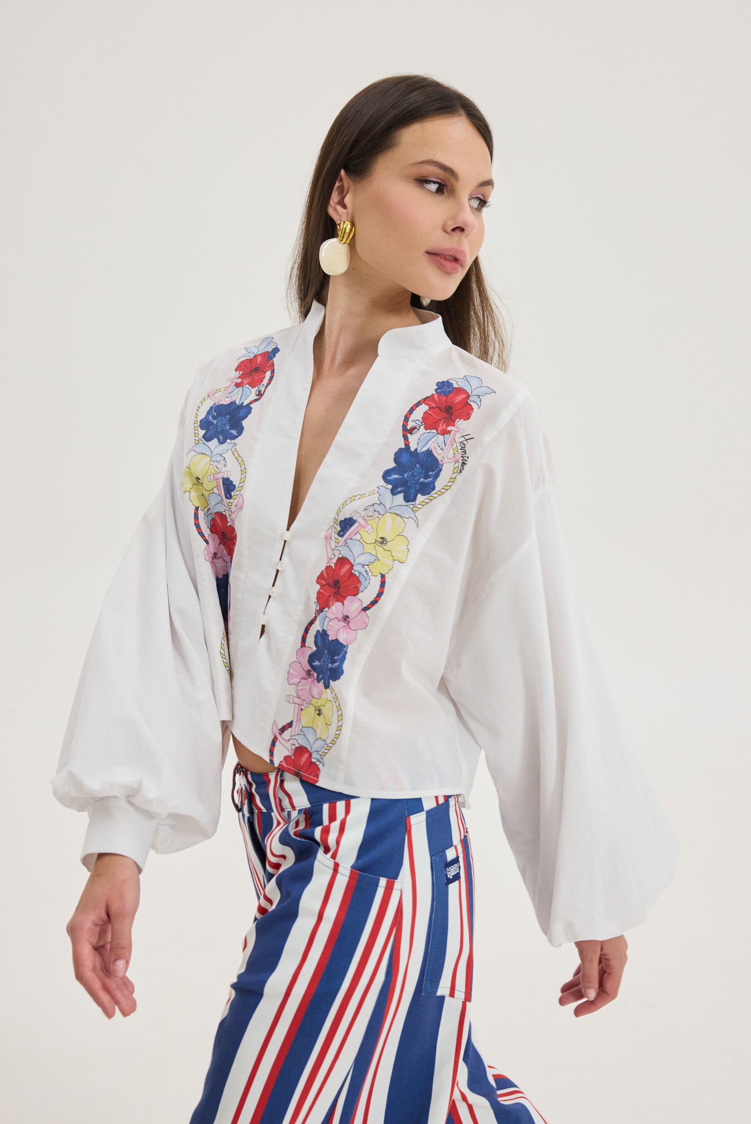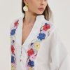 • Μονόχρωμο λευκό με λεπτομέρεια από λουλούδια στο μπούστο