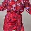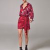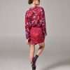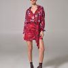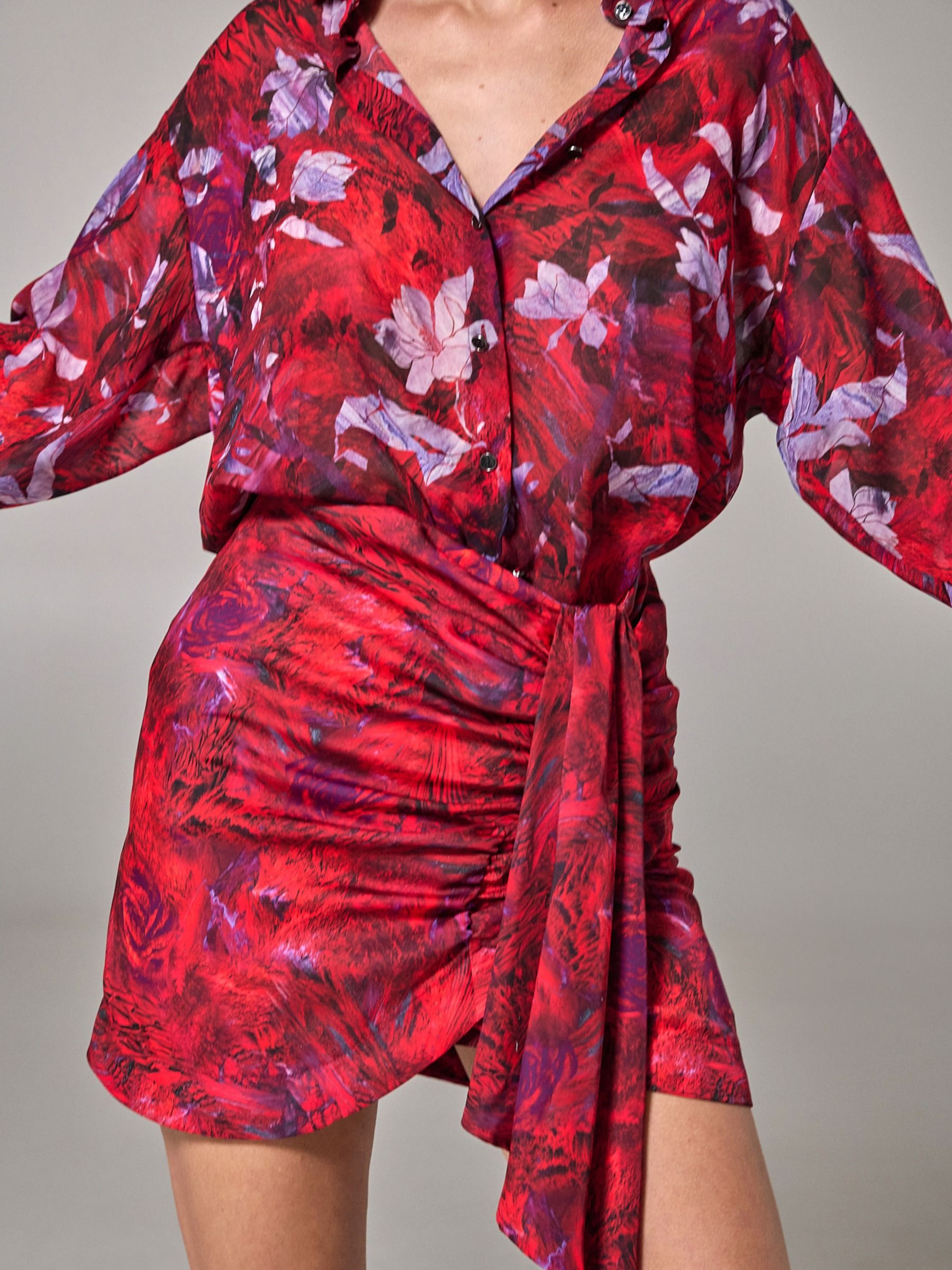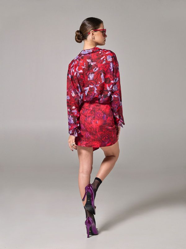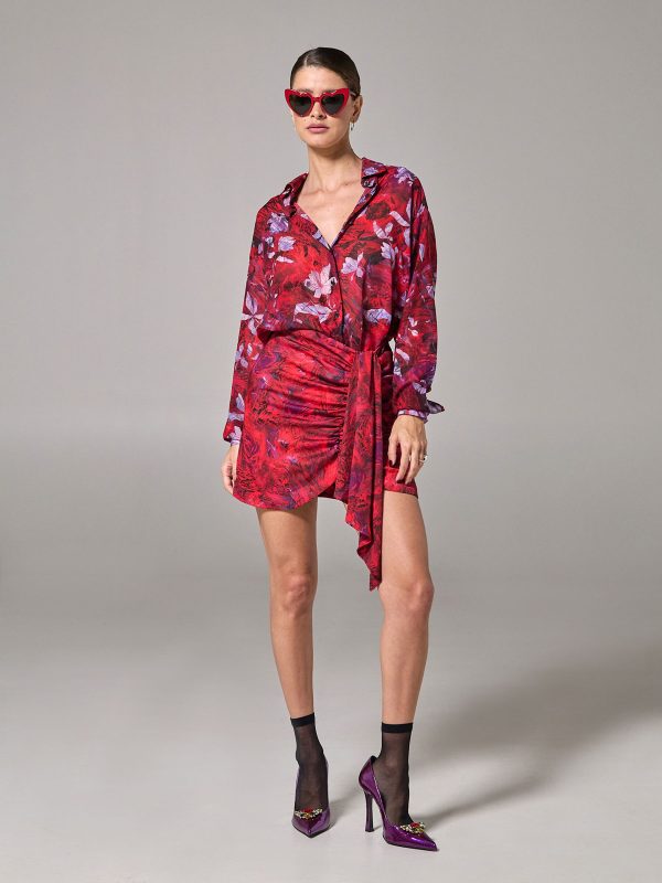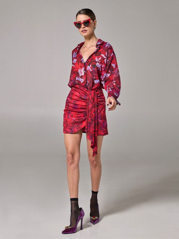 Η Project Soma Jaspe Red Skirt κατασκευάζεται από σατέν εμπριμέ ύφασμα. Mini φούστα σε στενή γραμμή με βολάν.