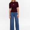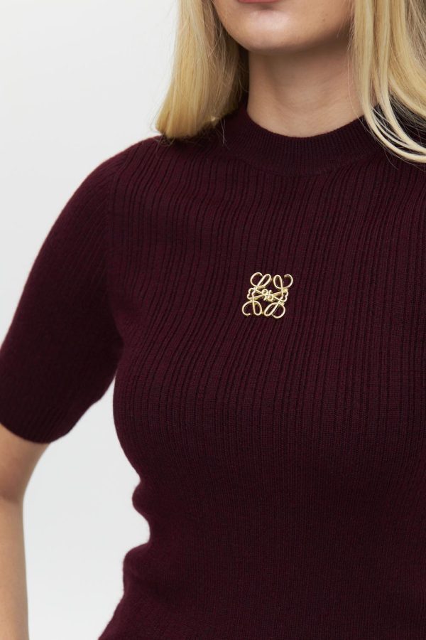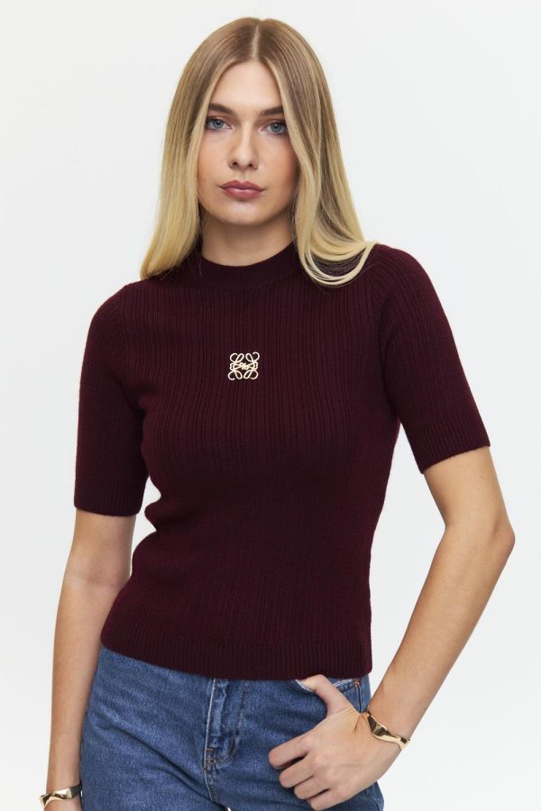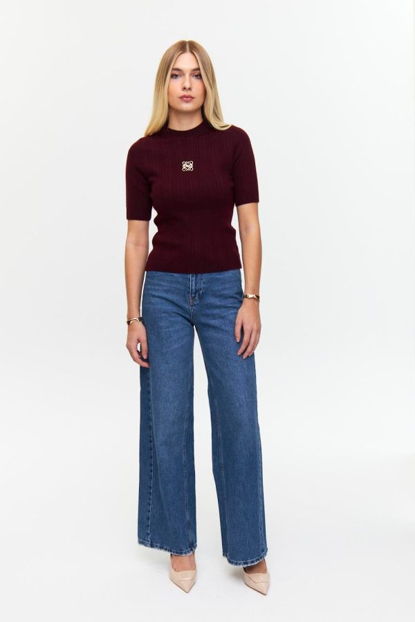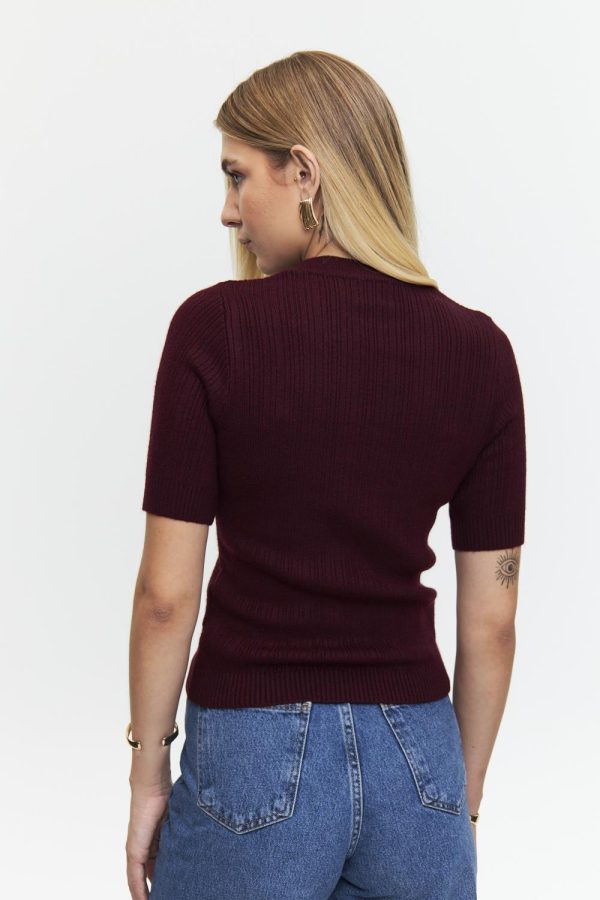 Liliana-Κοντομάνικη Πλεκτή Μπλούζα Crew – Claret Red
