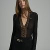 Το PROJECT SOMA Orietta Black Bodysuit κατασκευάζεται από τούλινο ελαστικό ύφασμα. Κορμάκι με λεπτομέρεια δαντέλα.