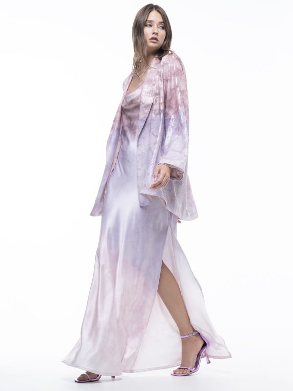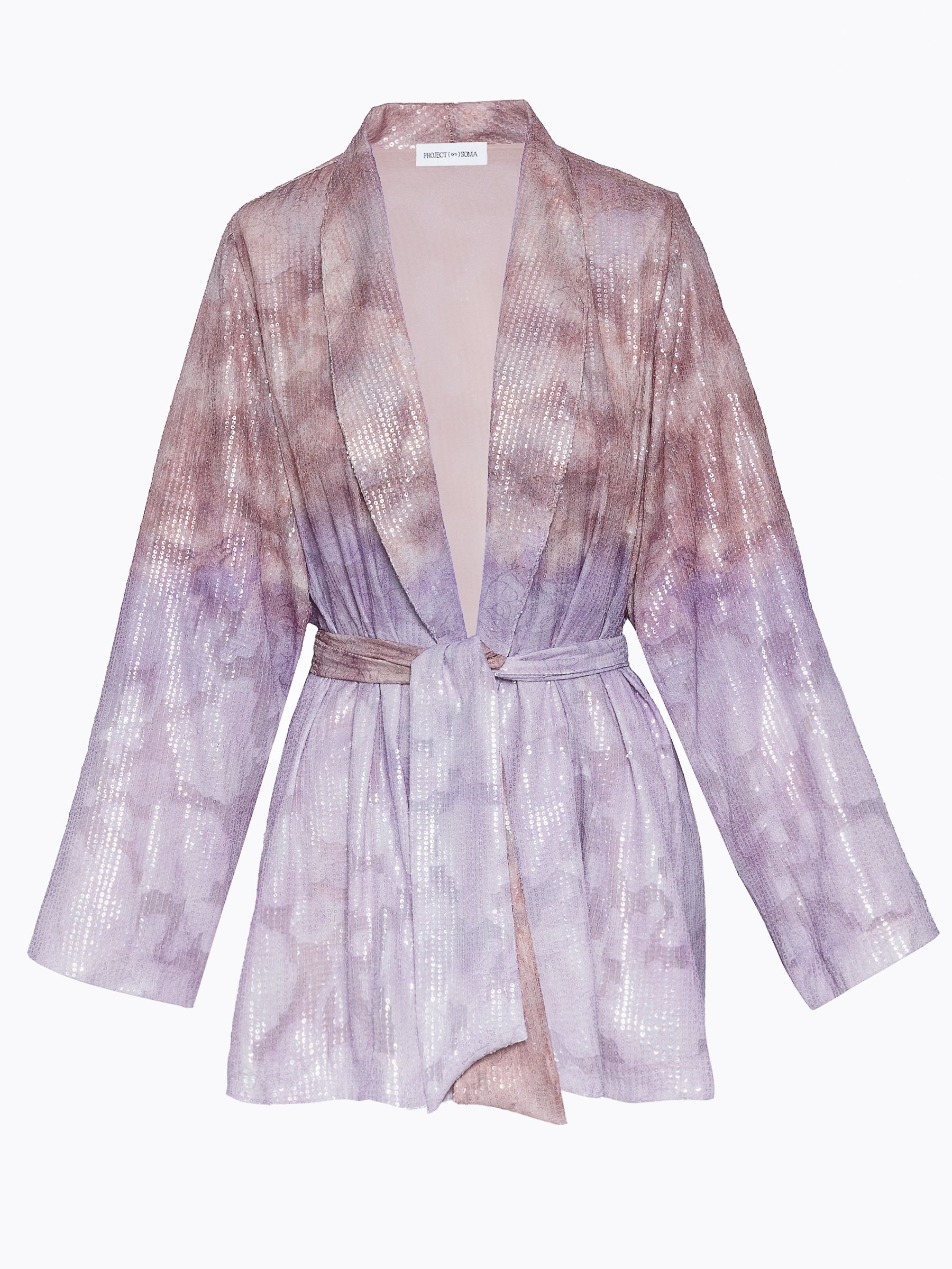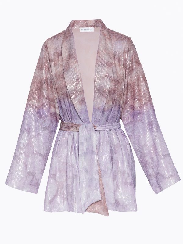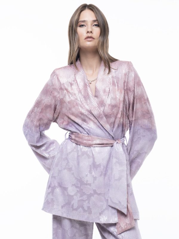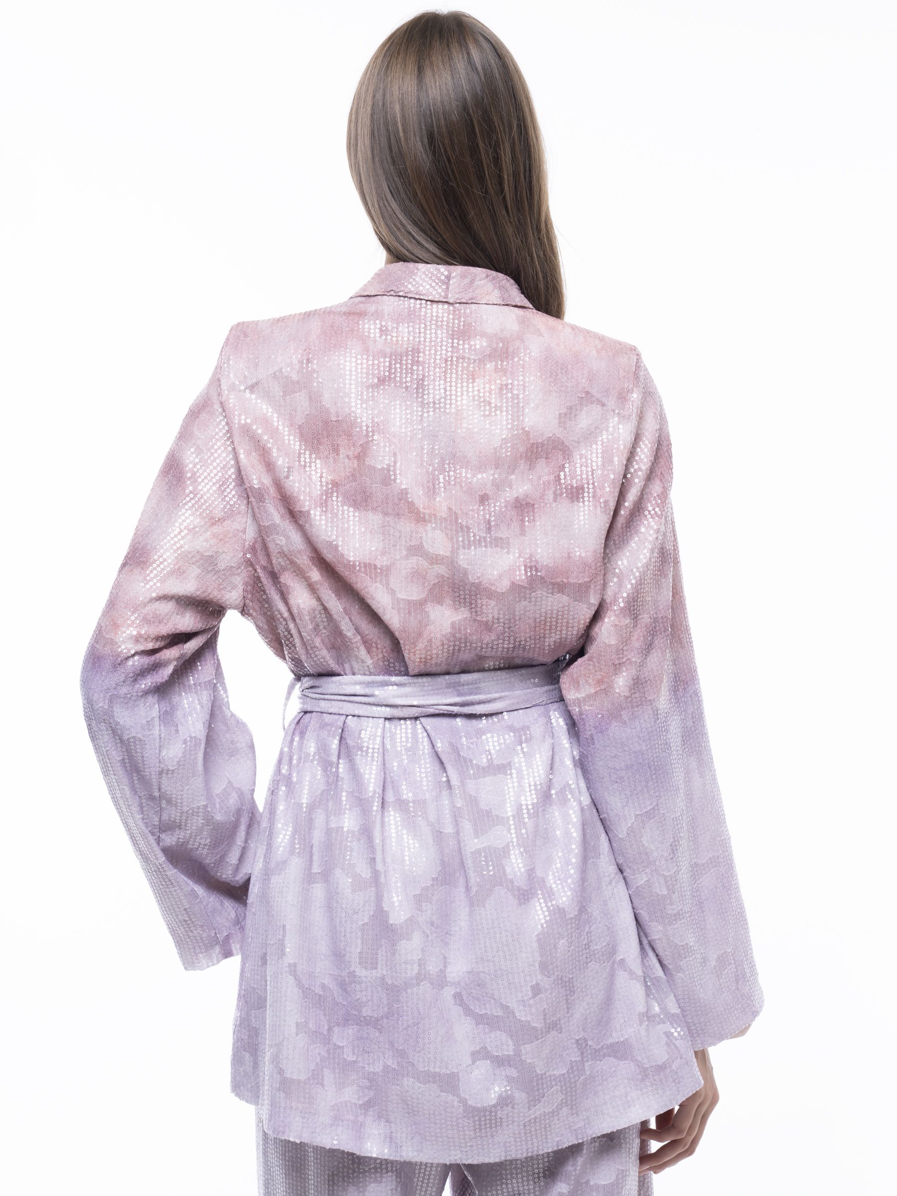 Το Project Soma SANGUIS BLAZER κατασκευάζεται από premium, ντεβορέ ύφασμα παγιέτα. Σακάκι σε χαλαρή γραμμή με ζώνη στη μέση και ντεγκραντέ τύπωμα.