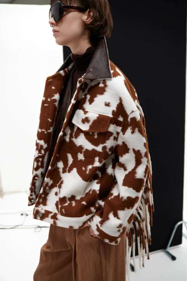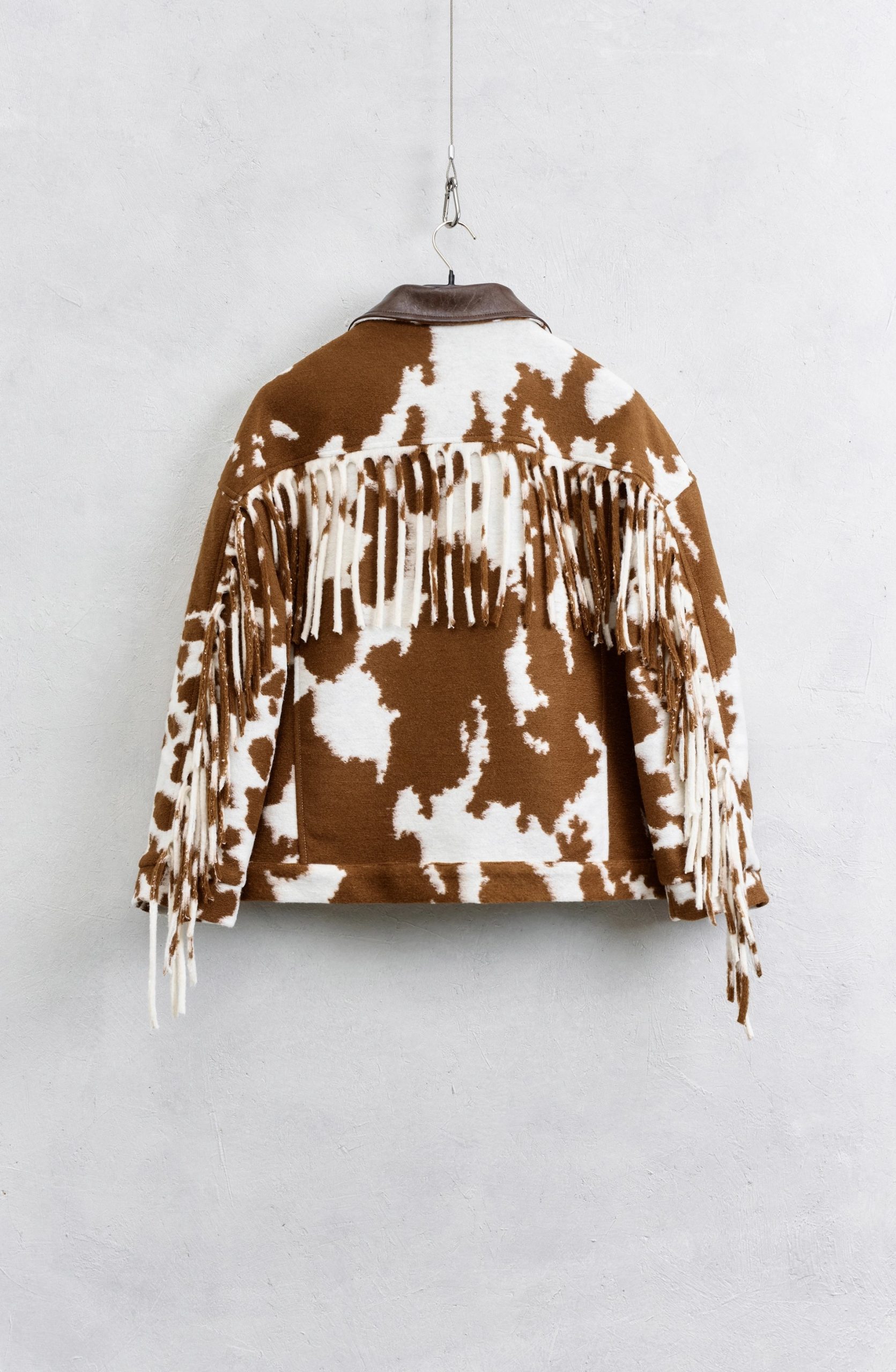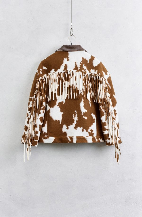 Ένα statement κομμάτι με μια μοναδική στυλιστική προσέγγιση που συνδυάζει το trendy cow print με διακοσμητικά κρόσια, δημιουργώντας μία έντονη, εκκεντρική εμφάνιση. Το Texas Fringe Jacket είναι ιδανικό για να αναδείξει το προσωπικό στυλ με μία ενδιαφέρουσα πινελιά.